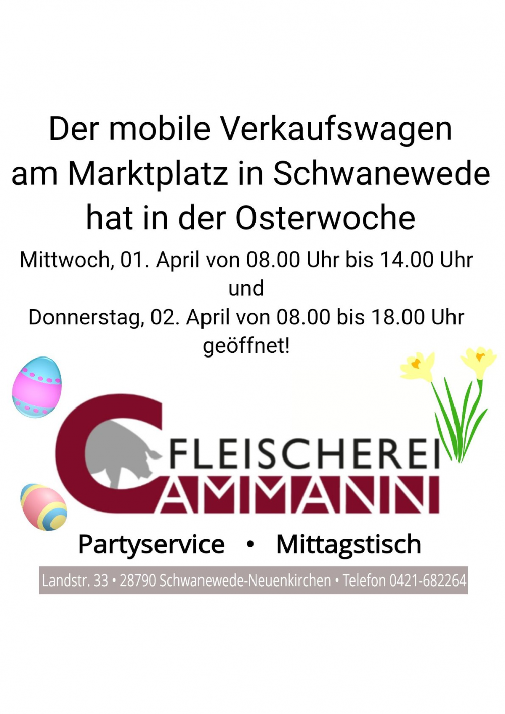 in der Osterwoche ist unser Verkaufswagen am